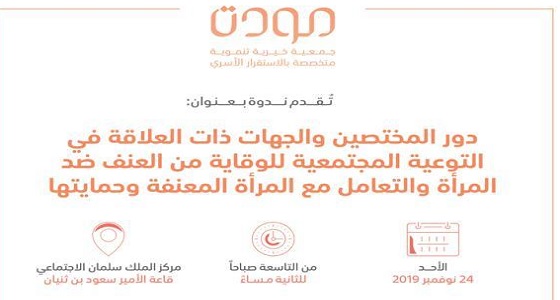 مودة تقيم ندوة التوعية المجتمعية للوقاية من العنف ضد المرأة الأحد القادم