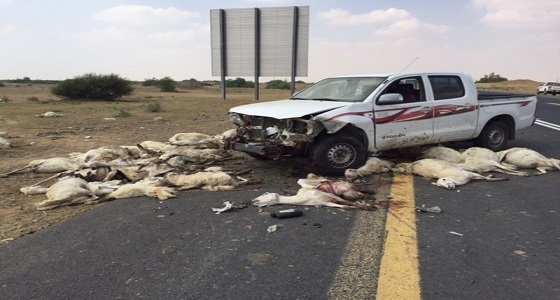 بالصور.. السرعة الزائدة تتسبب في نفوق أعداد كبيرة من الضأن بالقنفذة
